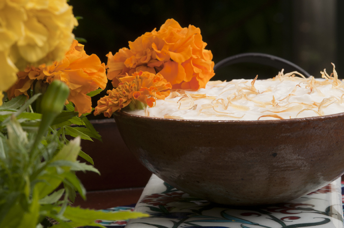 Honey and Toasted Marigold Petals Yogurt with Flatbread