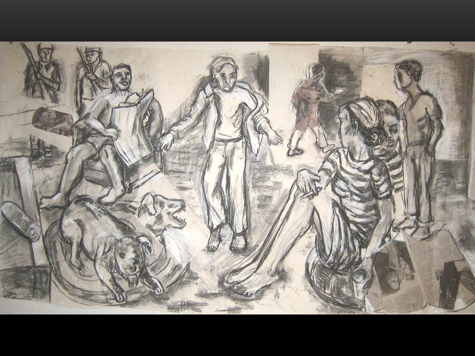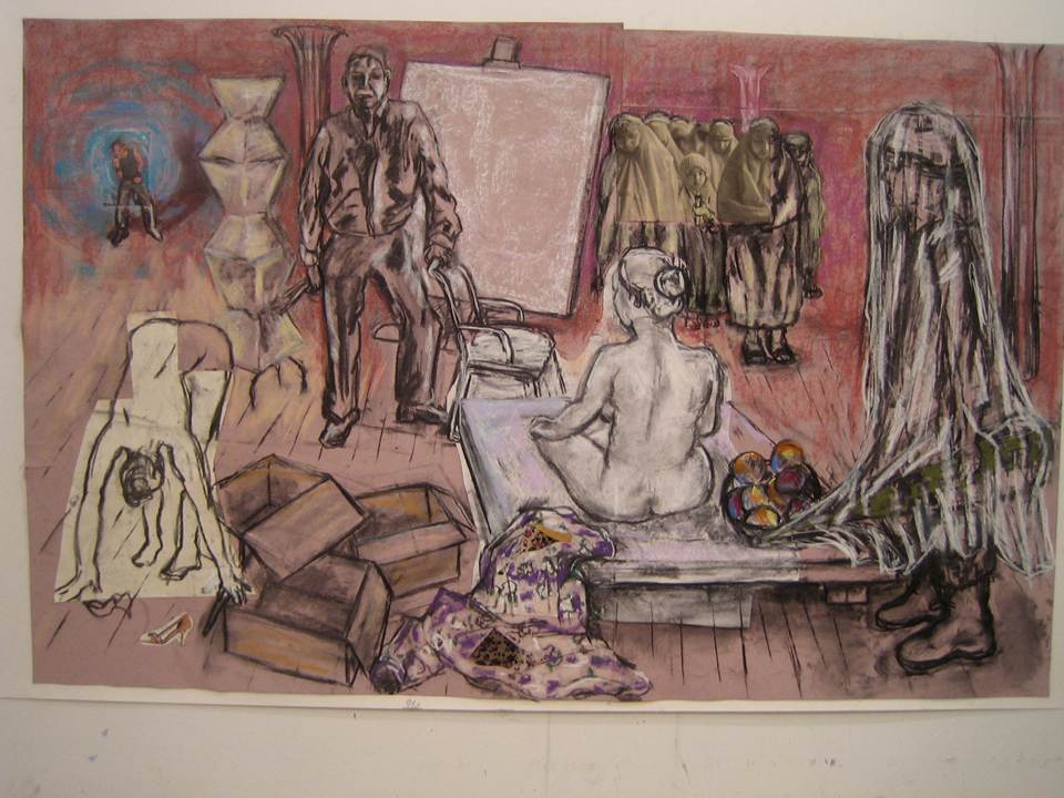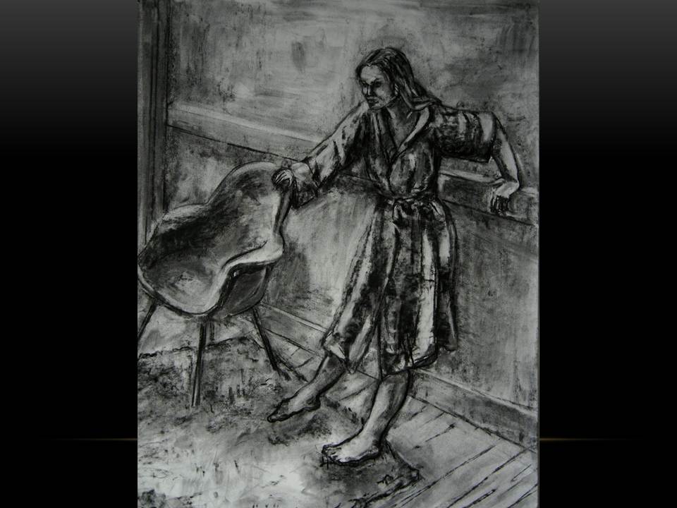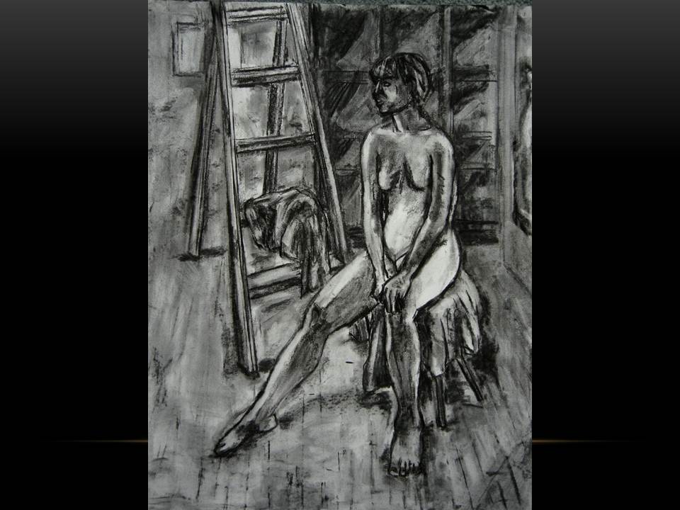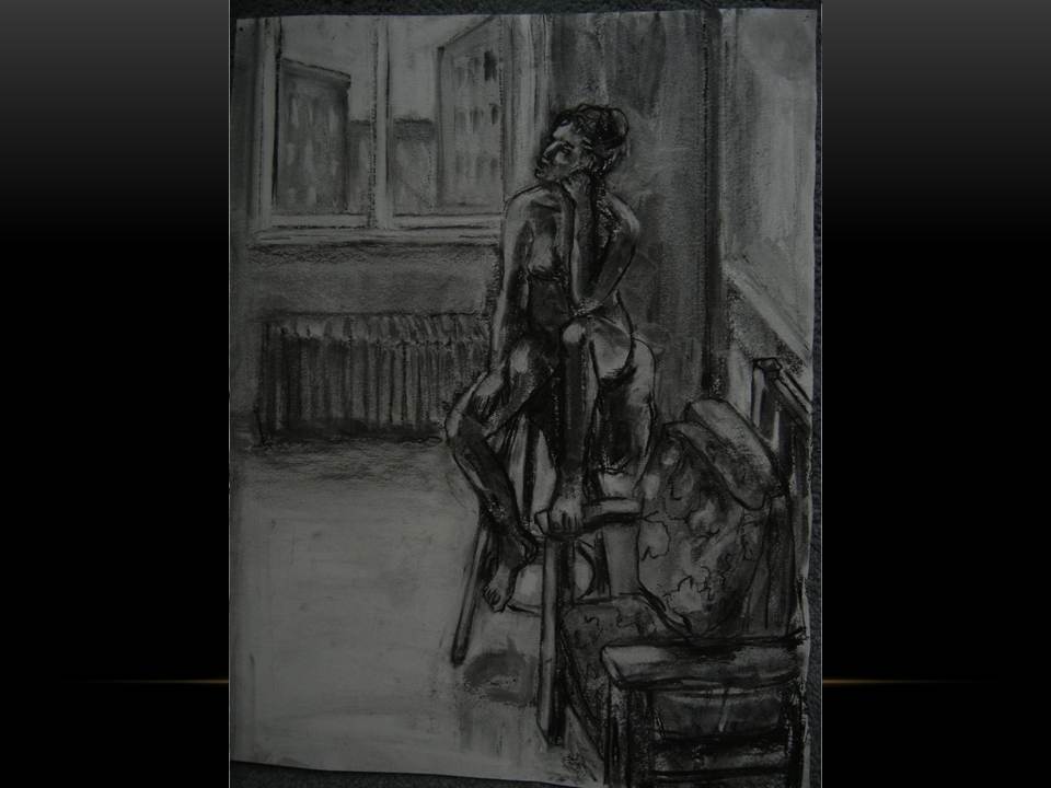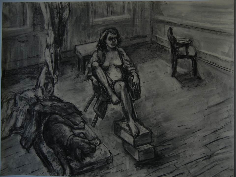 Anne Delaney: Anne Delaney is excited and honored to be part of the Moscow 57 gang of merry troubadour/trouble makers. Anne is a member of the Bowery Gallery in New York City and has exhibited there in 2010. She works in oil and charcoal and draws on themes from her experience as a mother, activist and theater enthusiast. Anne is exploring the ways in which the figure’s pose, in a simple setting and with certain “props” can reveal states of being and themes. Her next show at the Bowery Gallery will be in the fall of 2013.