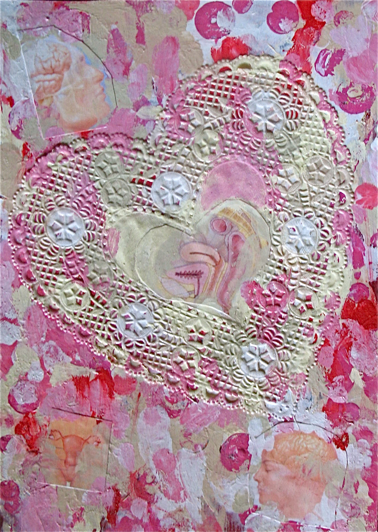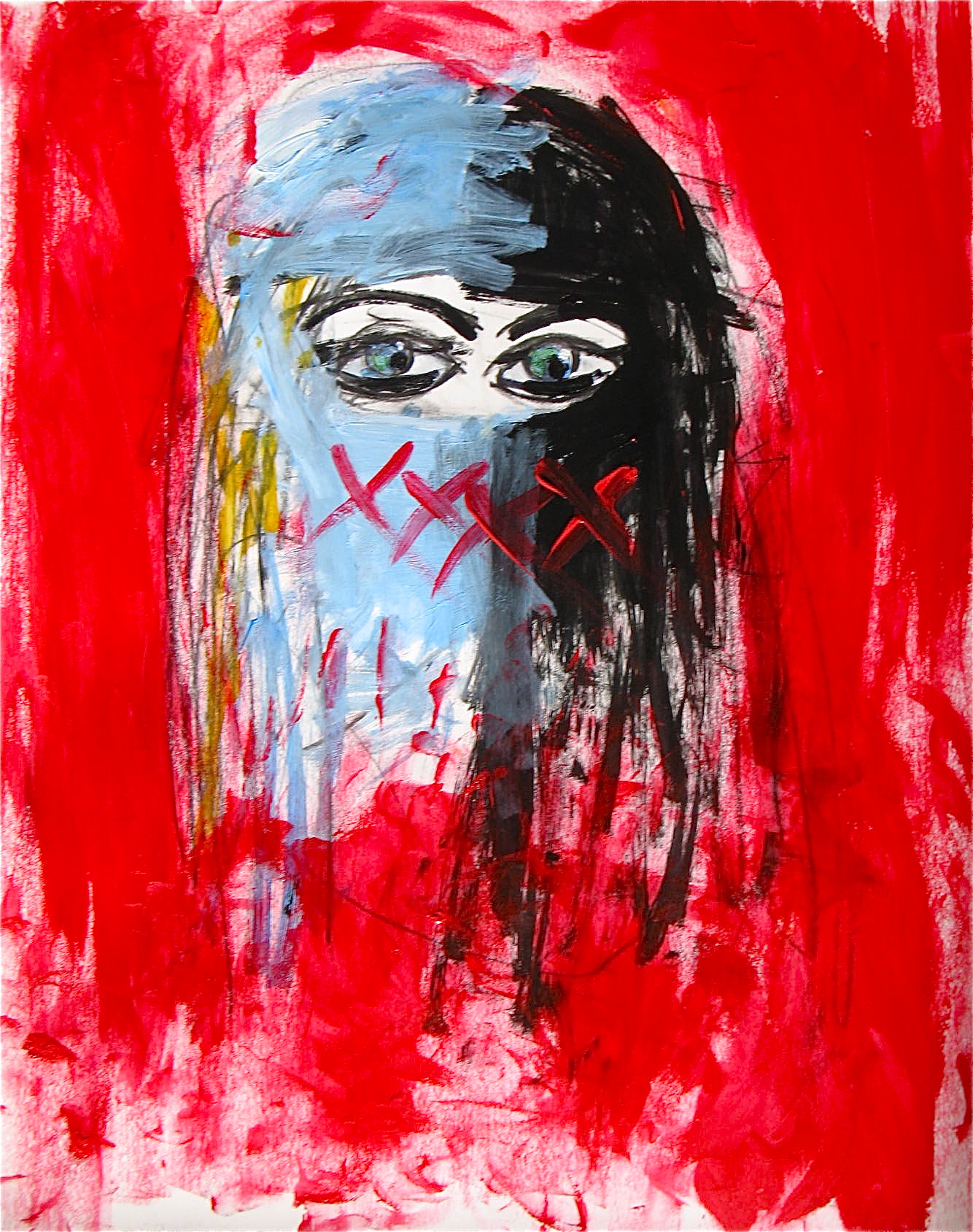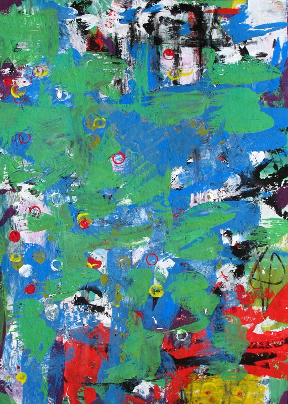 In much of my works on paper I use the resist technique between crayon and paint.
