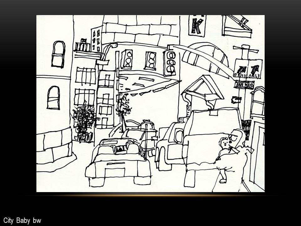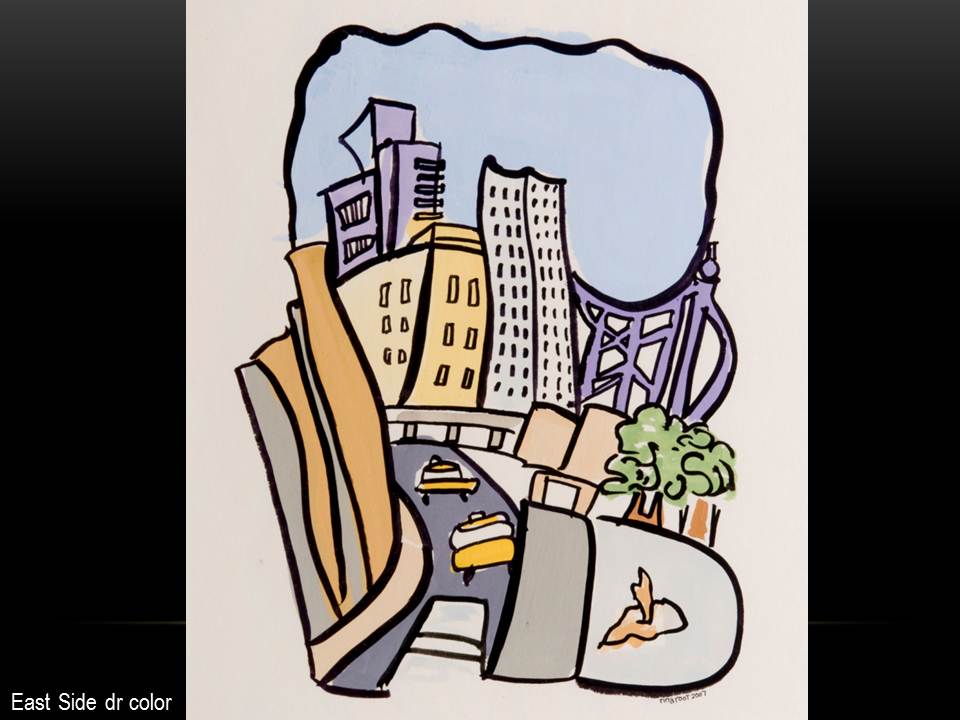 By day, Rina is a graphic designer attempting to organize the world with inventive visuals conveying data, images and words. Her work welcomes the eye and allows viewers a fresh experience in discovering new products, services and ideas. In her free time, however, the pendulum swings the other way as she celebrates the tumultuous nature of a visual cacophony. Her drawings emphasize line with a limited use of color to provide a system of notations. Perspectives and proportions may clash, but the illustration creates an organic world of controlled chaos and one can feel as if they are rapidly weaving throughout the artwork.